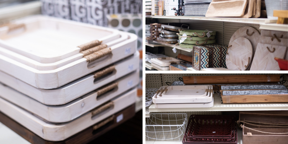 1. Start with the counters. Too often, our kitchen counters become to the home for much more than just the coffee pot and toaster! Keeping the counters clutter free will create a stress-free space for you to get excited about cooking and spending time in the kitchen again! Grab a tray or stand that you can turn into at the “clutter catcher” and deem is the spot for all the odds and ends that make it into the kitchen: loose change, rubber bands, gum, matches, batteries, earbuds, gift cards, medicine, extra keys, pens, chapstick etc. Use mason jars or other containers to sit on your tray to hold certain items. Place jars or stemmed glassware of different heights to add more space for everything. Don’t worry if your clutter catcher looks a little bit messy! That’s what it’s there for. Once you have a space for the odds and ends, it’ll keep your counters clean! Visit us to shop our selection of trays, stands, and organizers to find something that will work for you!
