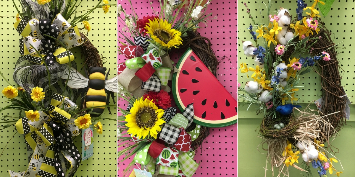 Are you a fan of whimsical wreaths with hot pinks, lime greens, turquoise and yellows or would you rather have that farmhouse feel with birds, wildflowers and cotton? Maybe your favorite flower is a sunflower and you want your wreath filled with sunflowers.