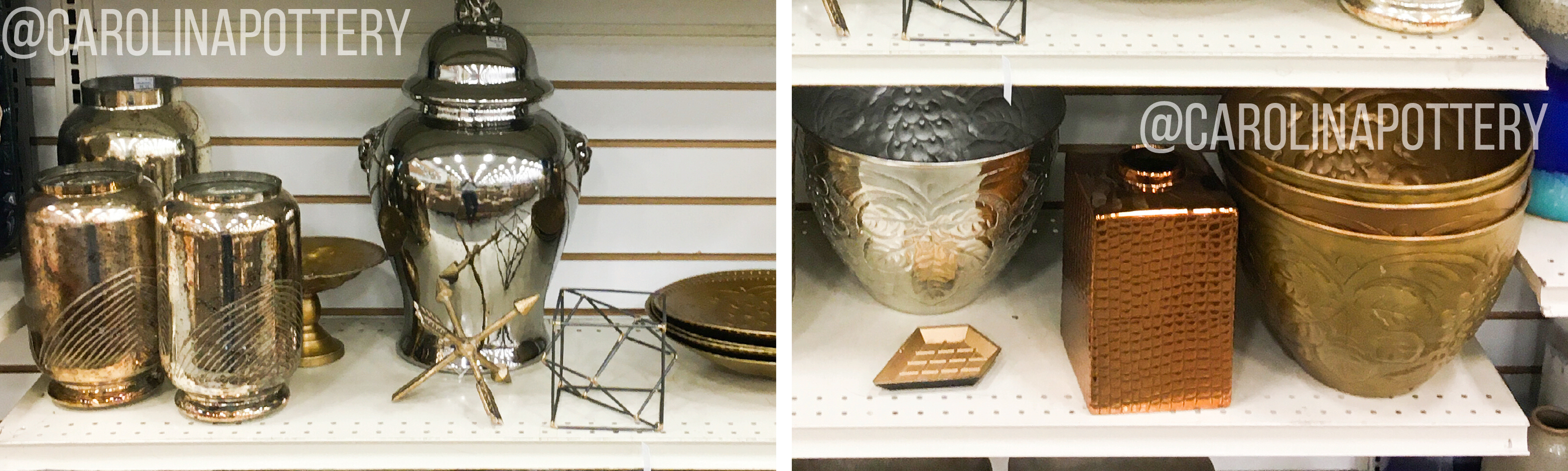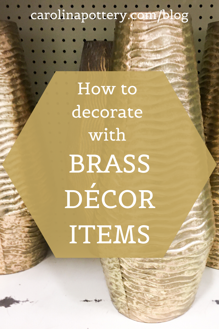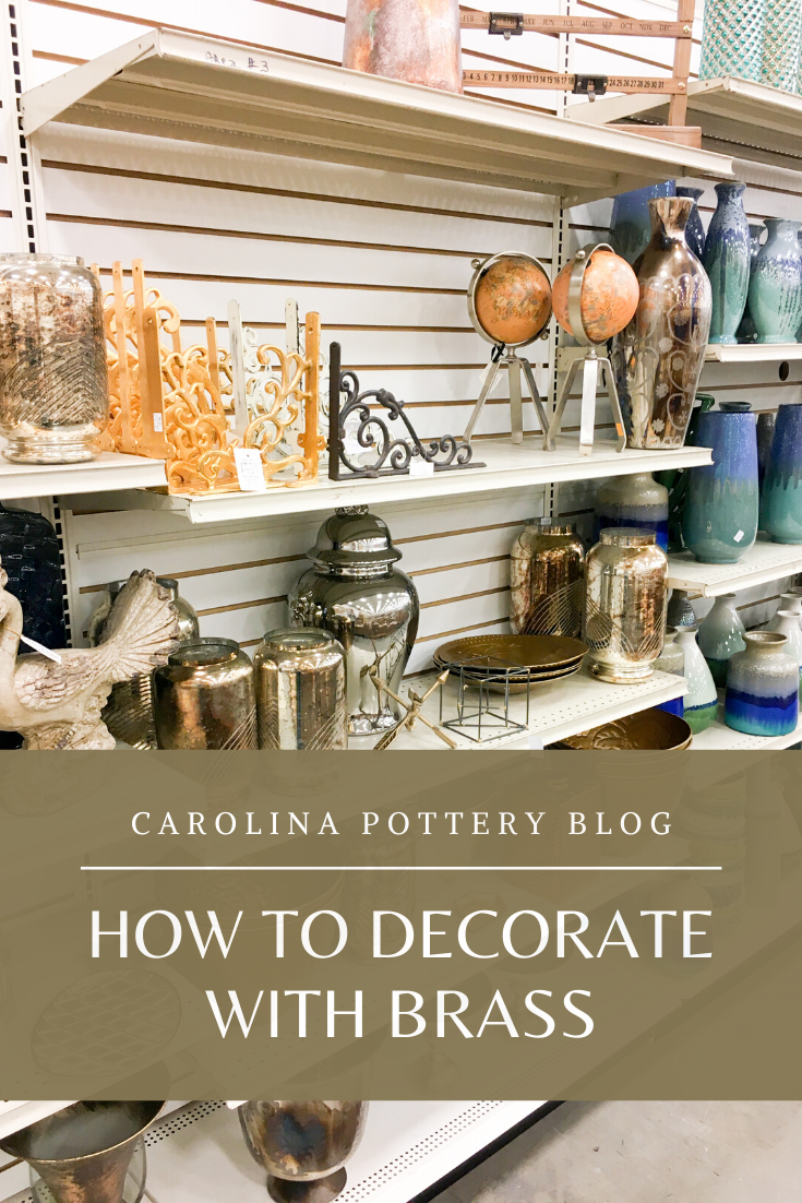 Get creative and show off your personality with brass finished decor accessories! If you like an antique look, start looking in thrift stores for something you can repurpose, or stop in at Carolina Pottery to find something new!