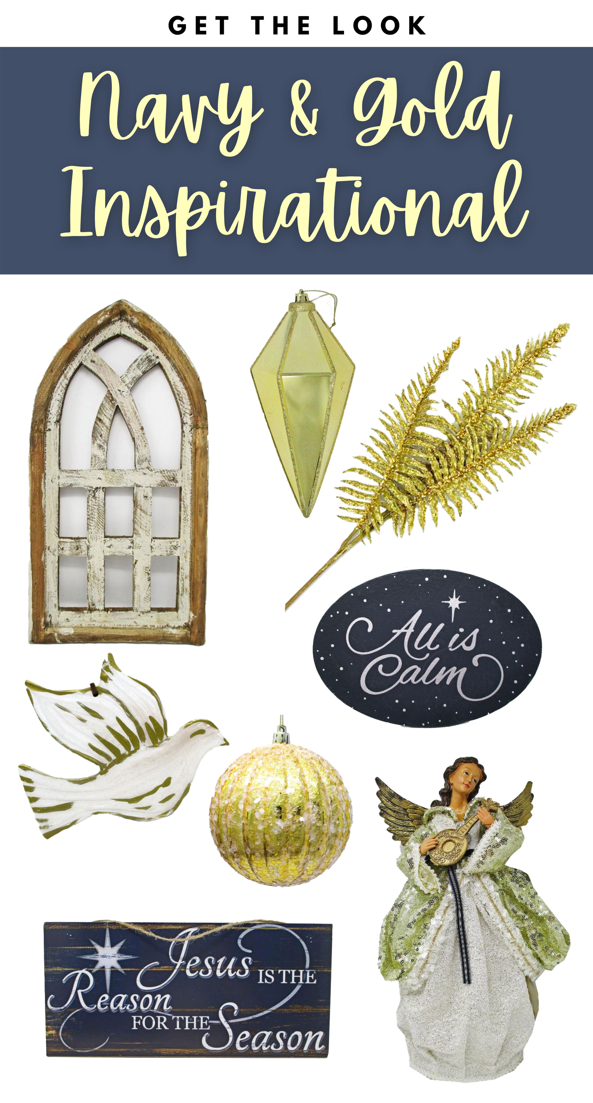 Our inspirational themed tree is dripping with gold this years! Glittering gold ornaments and florals provide an an eye catching contrast with the green of a Christmas tree, or even a frosted/flocked tree! Set it off with navy ornaments, ribbon and themed signs to convey the true reason we celebrate every year.