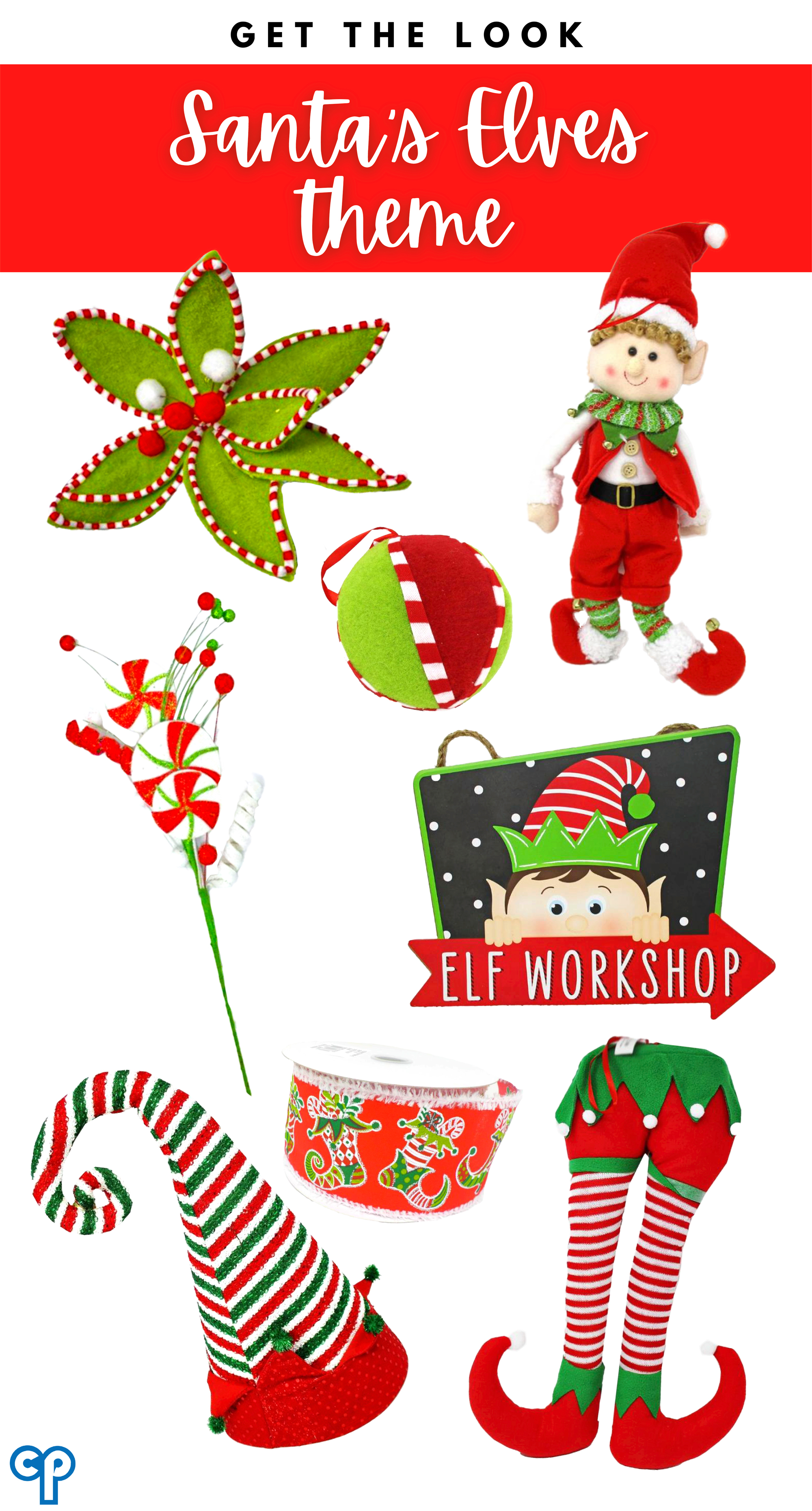 Christmas is truly one of the most versatile seasons to decorate for. There are themes and styles for every taste and personality to fit in with your home’s year-round style, or to bring a little fun into your home for a couple months out of the year. Our elf theme is perfect for adding some festive child-like fun to the Holidays! You can make a kid’s tree full of handmade ornaments from past years and add a few elves and plush poinsettias, or go all out and create an entire tree with elf-ribbon bows and picks with elf ornaments and signs to match!