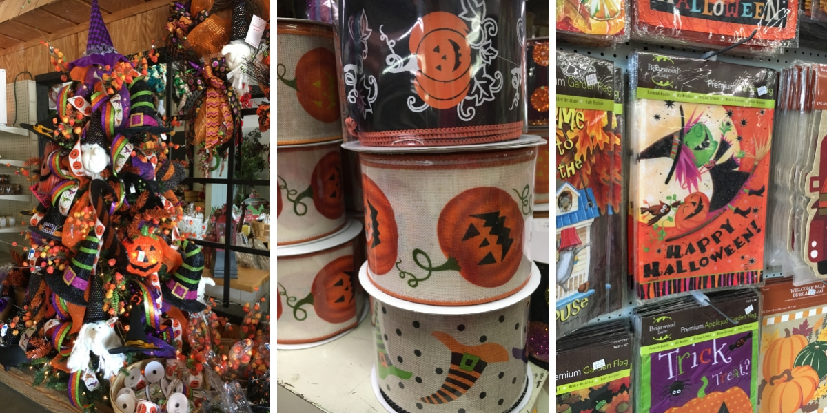 At Carolina Pottery, we love seasonal decorations. We have a large variety of spooky home décor to create a festive feel at your house. Select from our Halloween door mats, flags, metal yard décor and door hangings to greet the children as they come to fill their bags full of candy.We have signs, lanterns, and pumpkins galore! Witches fly and ghosts boo waiting for you! Carolina Pottery also has a large selection of Halloween guest towels, dinnerware and other table top decorations. The floral department is filled with fall flowers, Halloween ribbon and picks to create a beautiful wreath or arrangement.