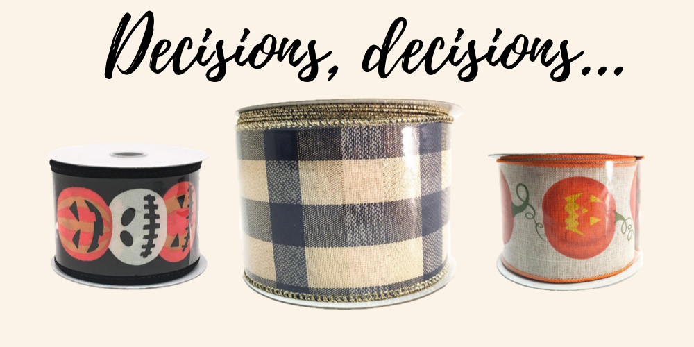 It’s fall and you want to make a new wreath! You hop in the car and head to the store, or log into your computer and start searching online for ribbon… but the options are endless and overwhelming. Polka dots, pumpkins, plaid… your mind and imagination spins with all the cute, quirky, and classy choices, but you can’t decide on which ones to use! If bringing the whole store home isn’t an option, we’ve put together some strategies to help you narrow those ribbon choices down.