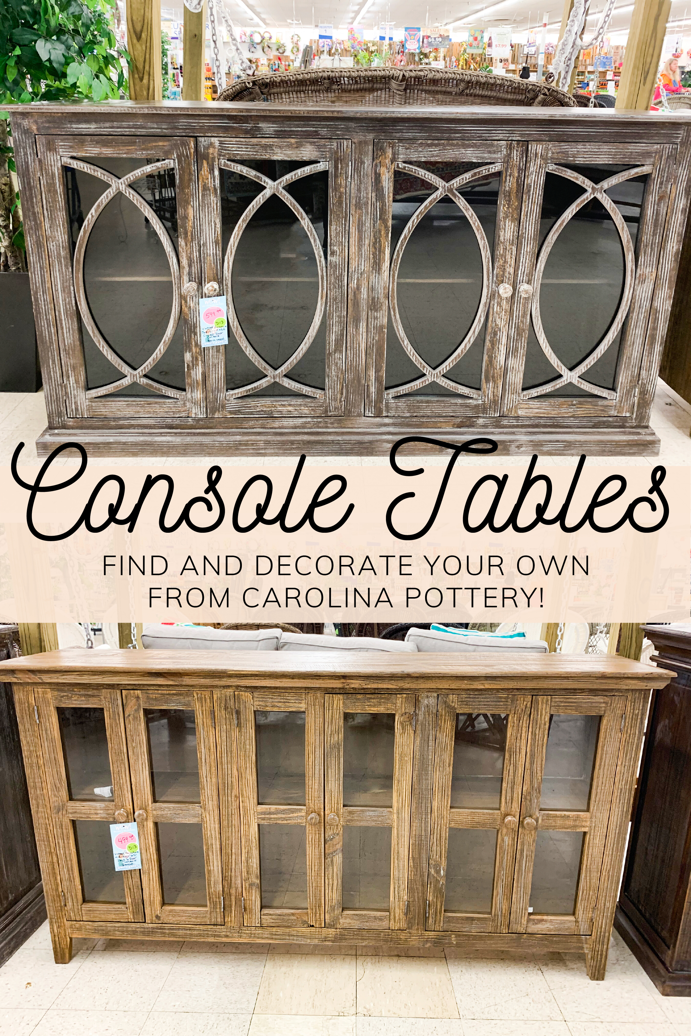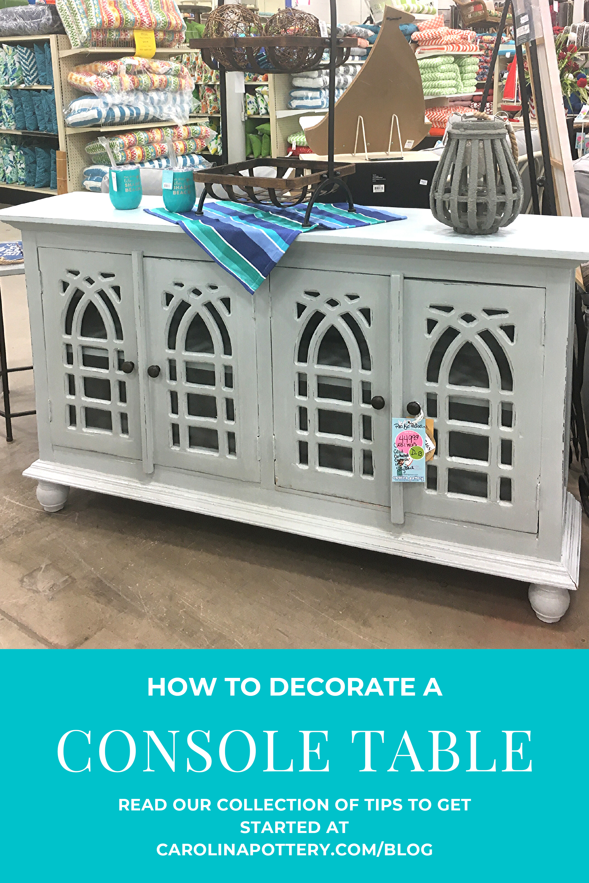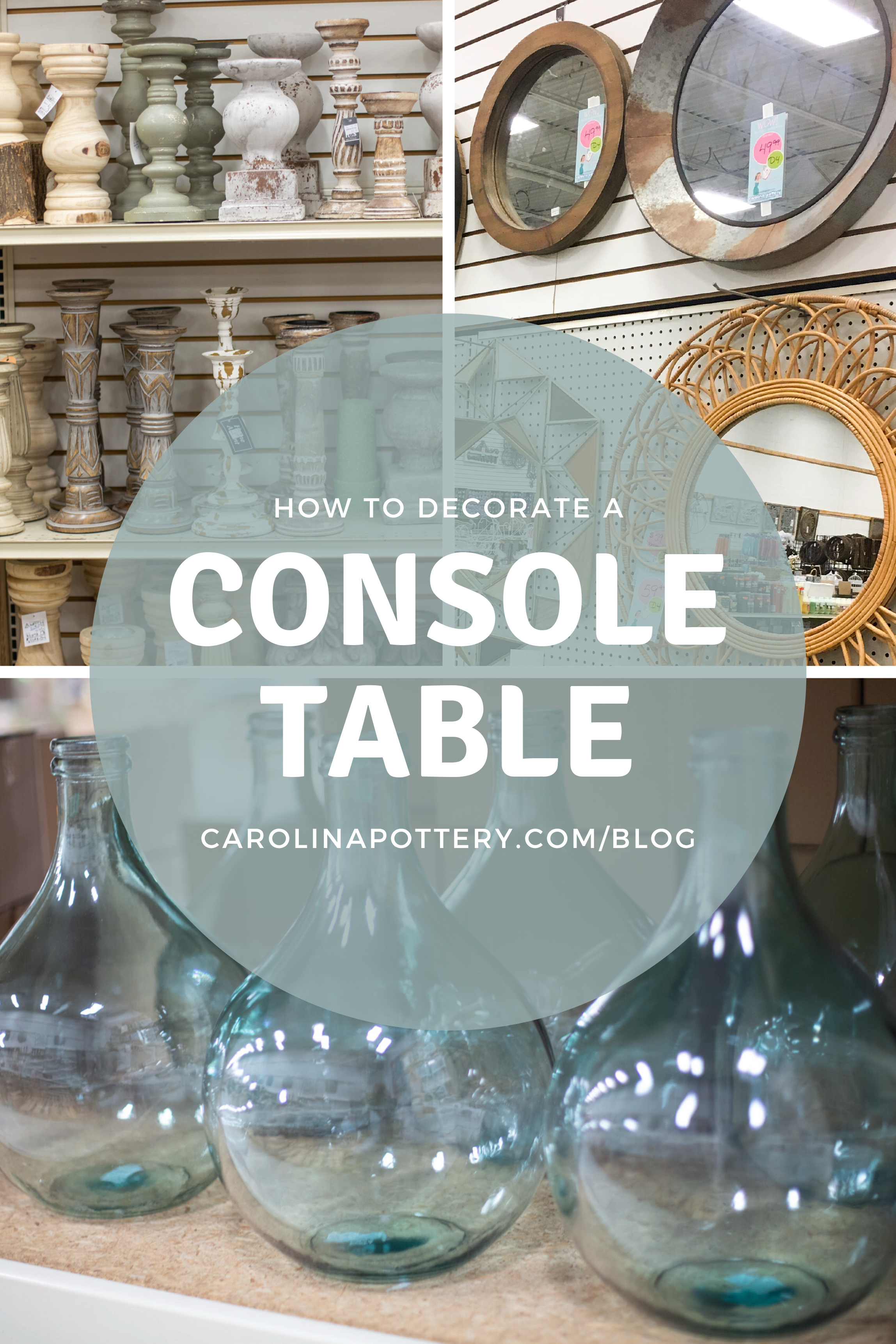As you decorate your table step back a few times and don’t be afraid to remove or replace pieces to see how you like their arrangement. Enjoy your newly decorated console table! Snap a picture to show us which items you’ve picked up and are loving from Carolina Pottery, and share with the hashtag #carolinapottery so we can share it! We can’t wait to see what you design! Happy Decorating!