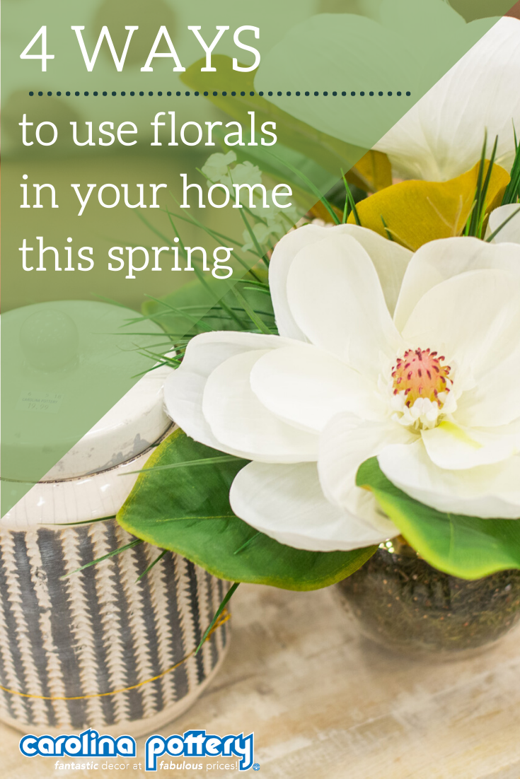 Even if you have a tiny budget, a few small additions of a few silk flowers, or one or two pieces of artwork can make a huge difference in a room, and satisfy your craving for color and warm spring breezes until the real thing comes. We can’t wait to see what you find at Carolina Pottery and how you incorporate it into your home! Snap a picture of your most recent floral finds and tag it on social media with the hashtag #carolinapottery or #thepottery, and we’ll share it for everyone to see! Happy Decorating!
