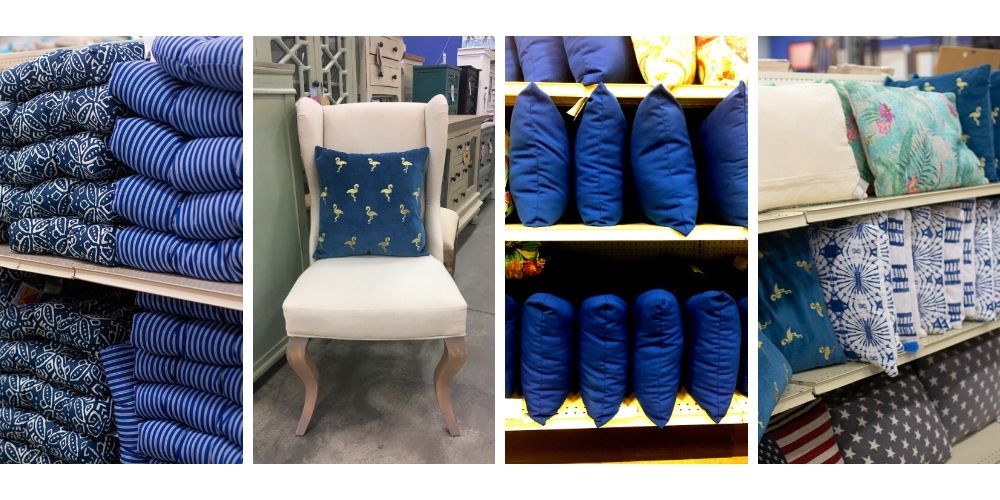 - For those of us that may be shy about committing to an entire wall of navy blue, comfy and cozy throw pillows make a great way to add a fresh look. They can be moved to different spaces if you get tired of looking at them in the bedroom or living room couch, and patterns and textures are the perfect way to experiment. A bold geometric pattern can give your space some energy, or a mud cloth pattern can work with boho or eclectic decorating styles. Our textile selection is huge, and a great place to start your search for the perfect squishy pillow!