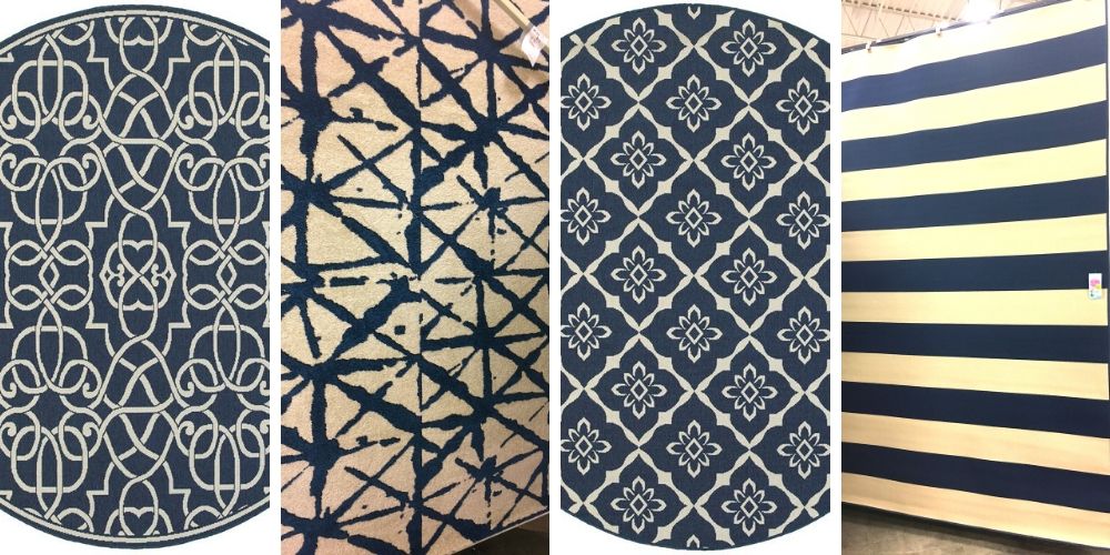 - If you feel brave enough to go a step above pillows, a rug in Classic Blue might be the perfect way to tie a room together! Navy can act like a neutral when paired with the right colors and works with the ever popular grey and white color scheme many of us have adopted into our homes. This is another opportunity to play with pattern and texture depending on the traffic of the room and patterns you choose for couches, chairs and pillows. We have a huge selection of rugs in stores and online if you don’t live nearby!