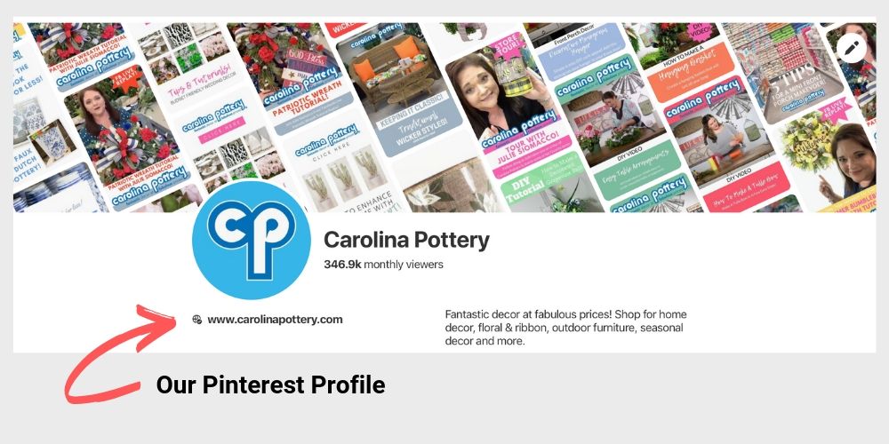 2. Follow us!Did you know we’re on Pinterest? Yep, we love scrolling through the pretty pins too! Search for “Carolina Pottery” in the search bar up top, then click on our profile and click “follow.” If you’re a big crafter, you won’t want to miss this step! We pin all of our DIY tutorials as well as have pins linking to some of our favorite online items! Once you follow us, you’ll be able to see these pins more easily! CLICK HERE TO FIND US!