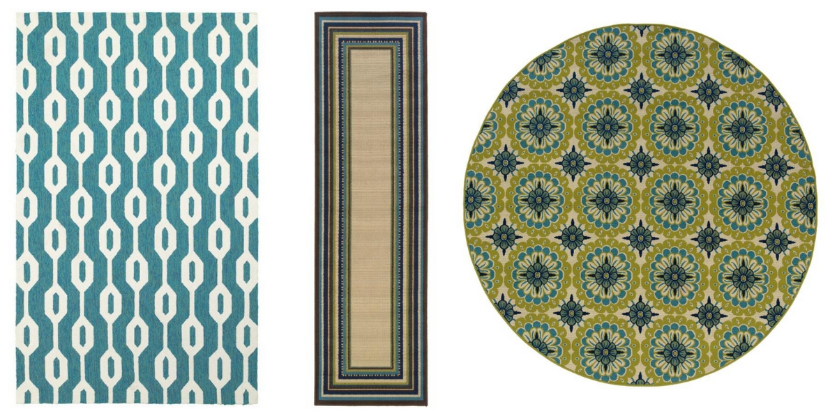 Once you have selected your wicker furniture, purchased your rocking chairs and all other fun porch or patio accessories-it’s time to find the perfect rug! At Carolina Pottery, we have a large selection of outdoor rugs ranging from 2x3 to 8x10. We have round, rectangular and even runners! Made with water resistant fibers, these rugs will survive the weather elements and look great all year long.