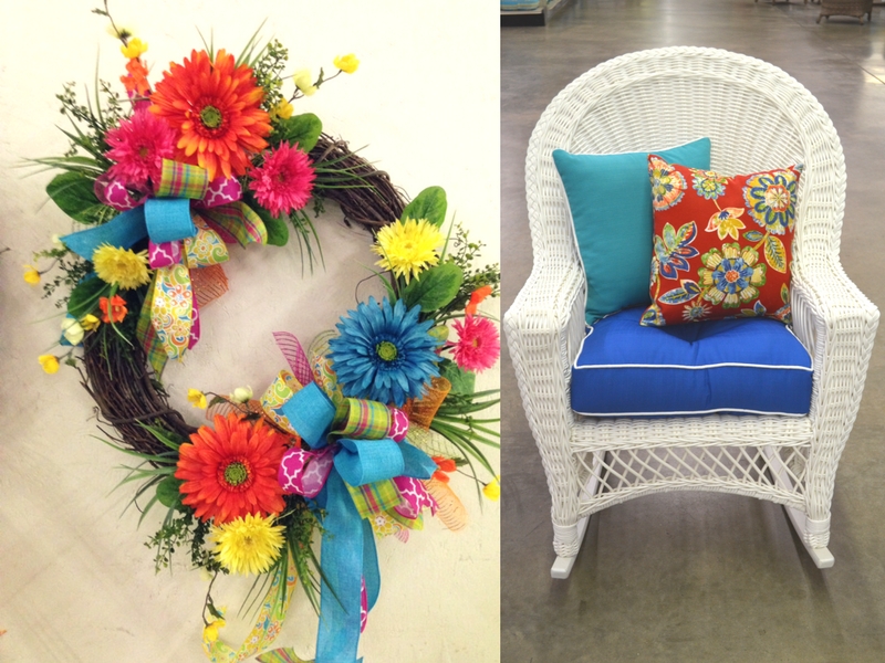 Spring is right around the corner and that means it’s time to freshen up your front porch! It is time to break out the broom, sweep away the winter blues, and bring out the colorful accents! What is the first thing that needs to go? Your dull winter wreath-you know, the one with the pine and red cardinal. That bird needs to fly away and let the butterflies swarm in. Grab that beautiful spring grapevine with the bright colors, ribbons and flowers. Hang that on your front door and the sun already looks brighter. Next, it’s time to change out the drab cushions on your porch furniture. Do you have a stunning wicker set? If not, come into any one of Carolina Pottery’s five locations or shop online! Once you have the perfect set of outdoor furniture, selecting the cushions is the fun part! For spring, you want color, color, color! At Carolina Pottery, we have striped cushions, solid colors and lots of prints. Try pairing a printed pillow with a solid colored pillow. Or better yet, be bold and select two different patterns. The possibilities are limitless!
