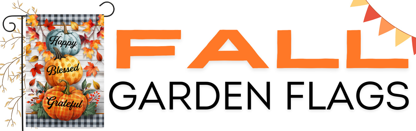 Barrel of Blooms & Pumpkins Burlap Garden Flag