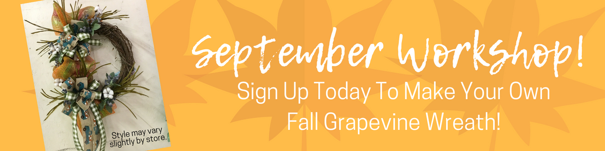 Join us September 15th to learn how to make a fall grapevine wreath!